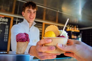 Unsere Eisbude hat wieder geöffnet und verwöhnt Sie mit hofeigenem Eis und frisch zubereiteten Kaffeespezialitäten.