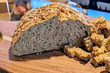 Ein heller Weizenmischteig mit Haferflocken und gesunden, leckeren Saaten wie Sonnblumenkernen, Leinsaat und Sesam. Die Kruste überzogen mit gerösteten Saaten.